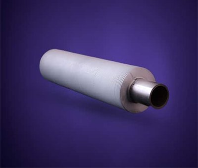 Aluminium fins are formed from a bimetallic tube consisting of a base tube and an aluminium muff tube. The fins are formed on a cold rolling process from the wall thickness of the aluminium muff tube. Extruded fin gives very good corrosion protection to the base tube, as the base tube is not visible to the atmosphere inbetween the fins.